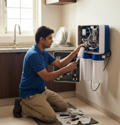 Professional RO installation ensuring clean, safe drinking water.